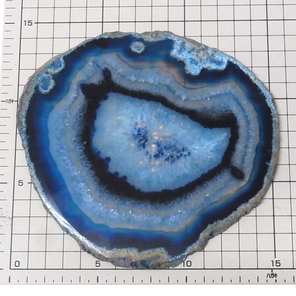 ブラジル産メノウを染色し、薄くスライスした色鮮やかなメノウスライスです。カラーはブルー、大きさは特大サイズです。