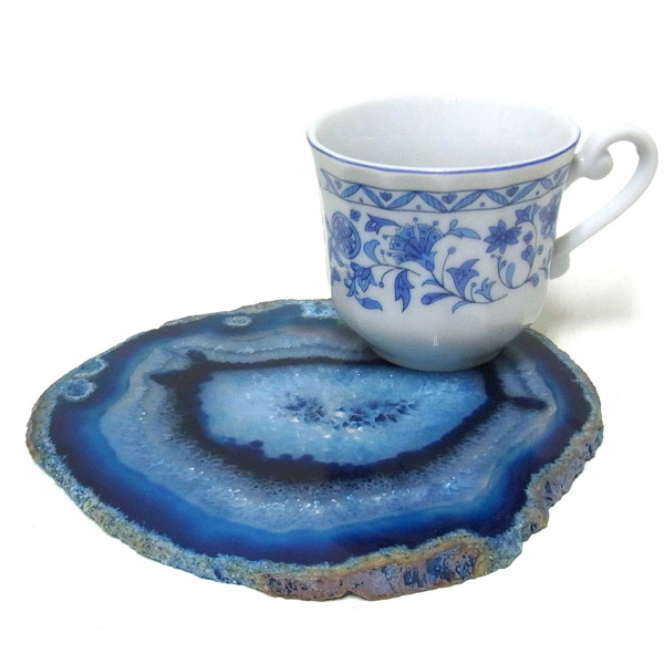 染色することにより、色の濃淡ができ、メノウの縞模様がより一層美しくなります。置物を置いたり、鉱物を置いたりのインテリアとしてや、グラスなどを置くコースターとしてもお楽しみ頂けます。