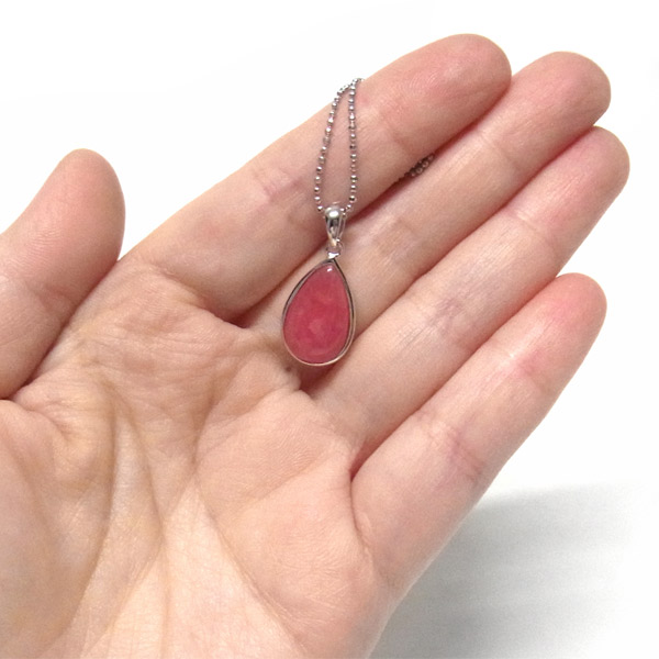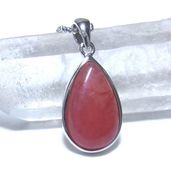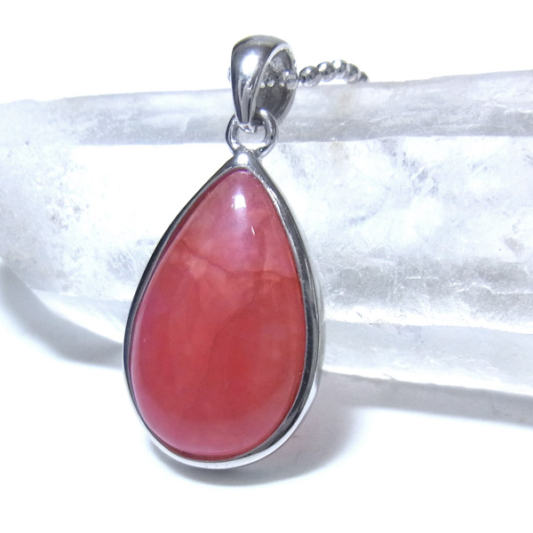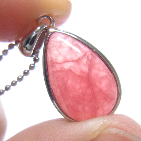 天然のインカローズをカボション しずく型のペンダントトップに加工しています。