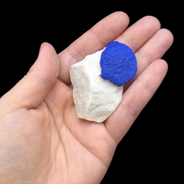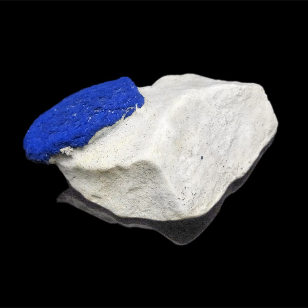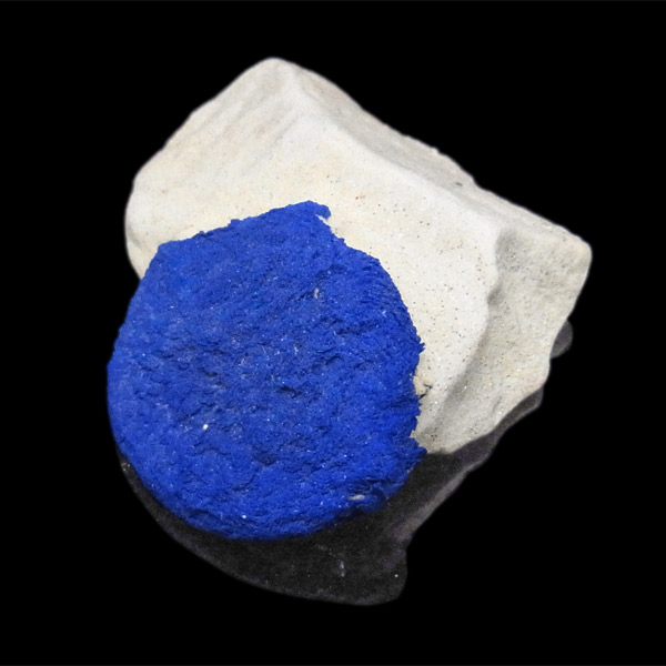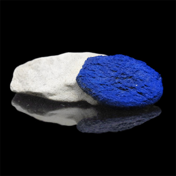 このアズライトサンは、カオリナイト(カオリン)中の僅かなクラックなどを伝い、銅分が円盤状に拡がって出来た、大変ユニークな結晶です。