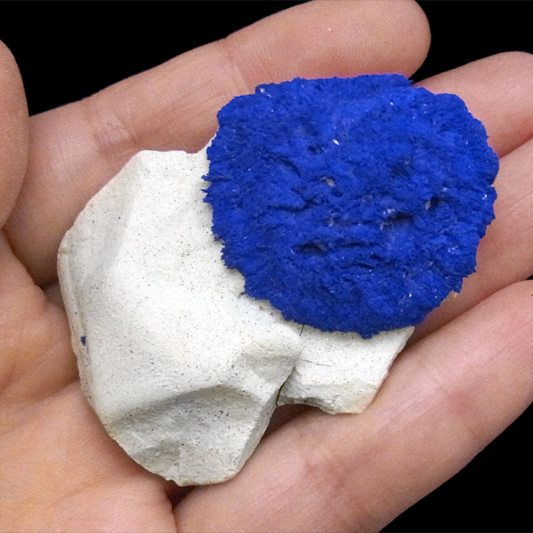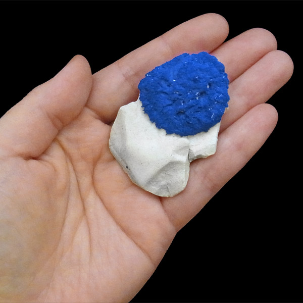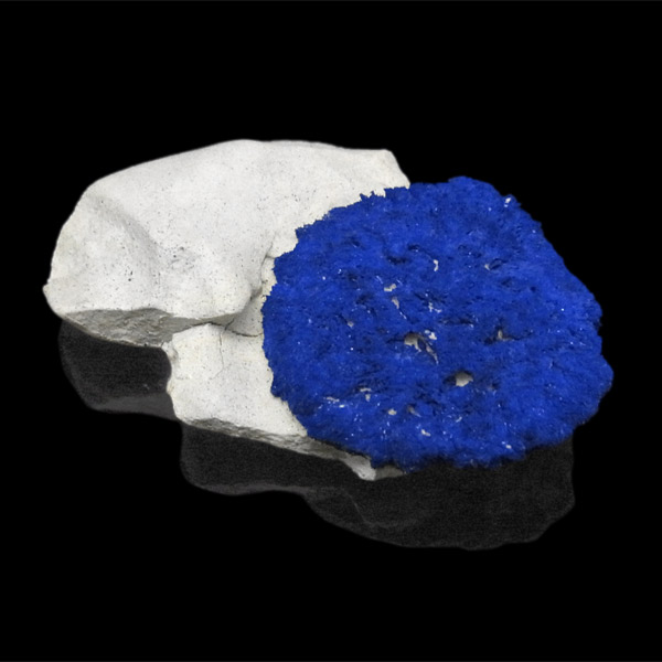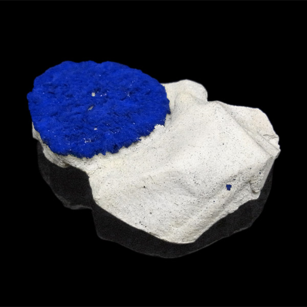 このアズライトサンは、カオリナイト(カオリン)中の僅かなクラックなどを伝い、銅分が円盤状に拡がって出来た、大変ユニークな結晶です。