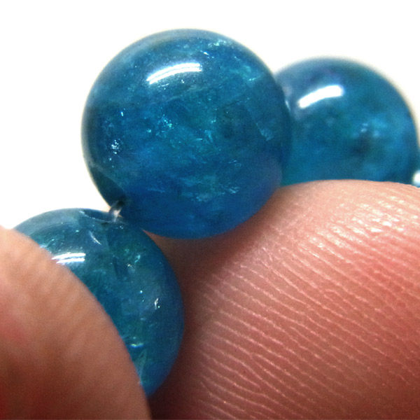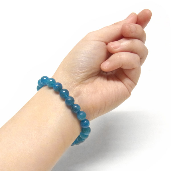 高品質ブルーアパタイトのブレスレットです。アパタイトの産地で有名なブラジル産のブルーアパタイトです。