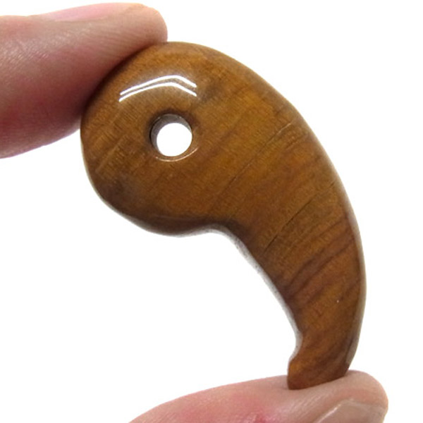 ペトリファイドウッド(珪化木・木化石)を使用して製作された勾玉です。 最大幅が3.5cmと大きな勾玉でペンダントやストラップなどにも使えます。魔除けや御守り、パワーアップアイテムに小袋などに入れて、肌身離さず持ち運べます。