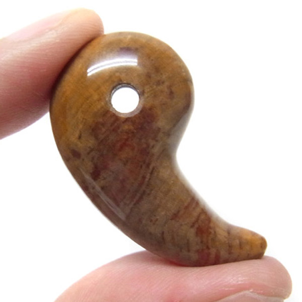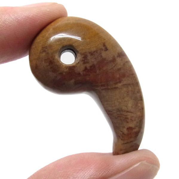 ペトリファイドウッド(珪化木・木化石)を使用して製作された勾玉です。 最大幅が3.6cmと大きな勾玉でペンダントやストラップなどにも使えます。魔除けや御守り、パワーアップアイテムに小袋などに入れて、肌身離さず持ち運べます。