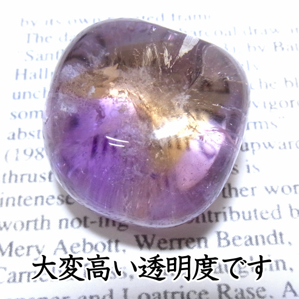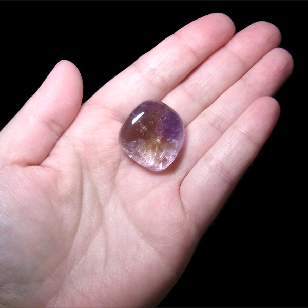 また、アメトリンを照らす光の種類や、タンブルの角度によって、濃く見えたり薄く見えたり、青っぽく見えたり赤っぽく見えたり、見ていて飽きることがありません。