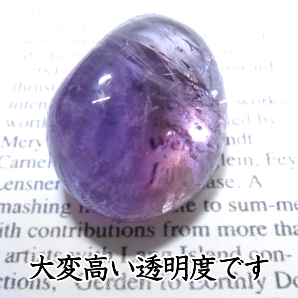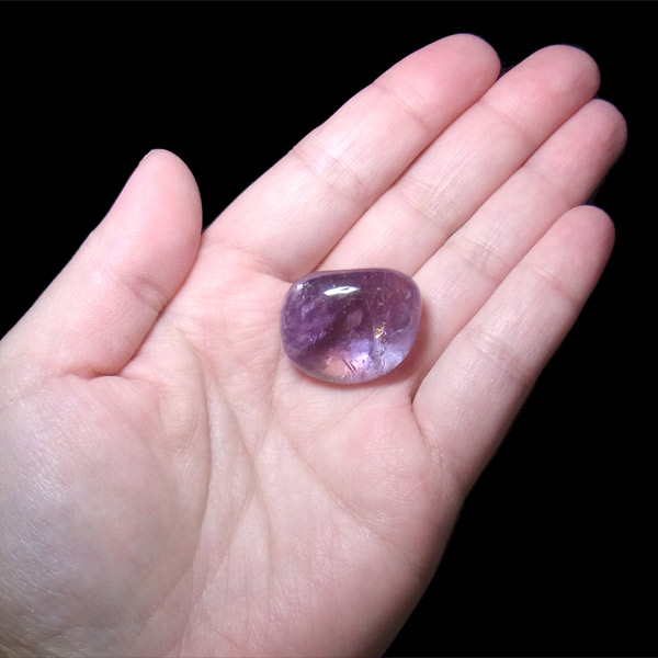 また、アメトリンを照らす光の種類や、タンブルの角度によって、濃く見えたり薄く見えたり、青っぽく見えたり赤っぽく見えたり、見ていて飽きることがありません。