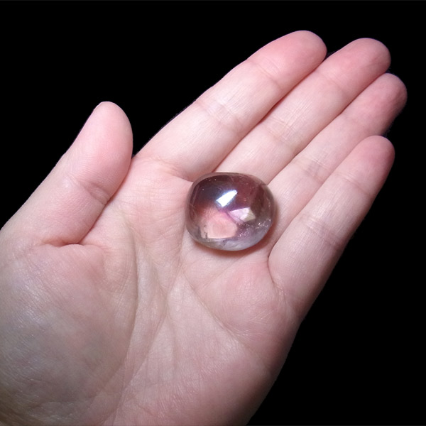 また、アメトリンを照らす光の種類や、タンブルの角度によって、濃く見えたり薄く見えたり、青っぽく見えたり赤っぽく見えたり、見ていて飽きることがありません。