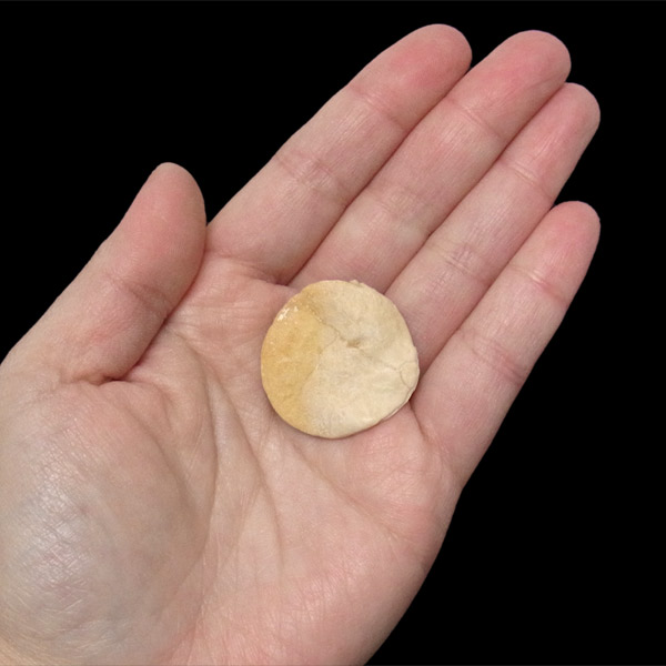 和名は貨幣石(かへいせき)といい、学名=Nummlites(ヌムリテス)といいます。