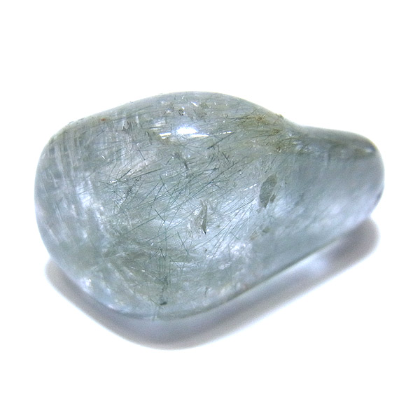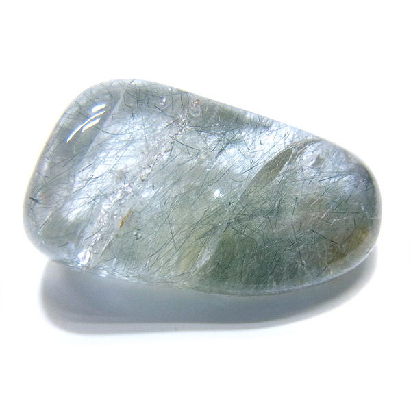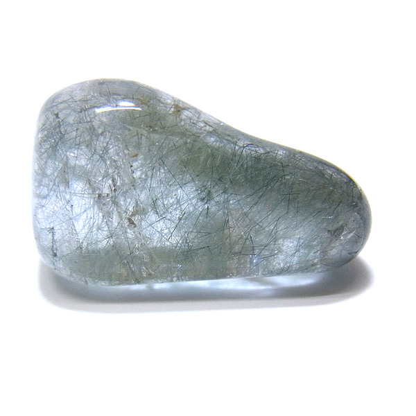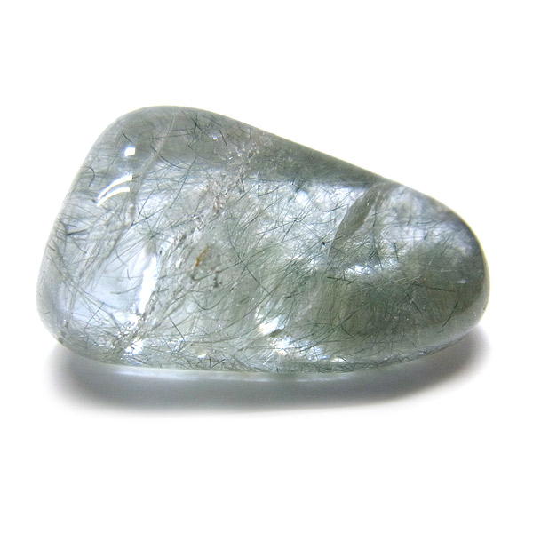 水晶の中にインディゴライト(ブルートルマリン)が針状に入っており、肉眼でもその美しさは確認できますが、ルーペでご覧いただくと、針の一本一本がハッキリと見えます。クォーツとインディゴライトのグラデーションも見事で、飽きのこないきれいなタンブルです。