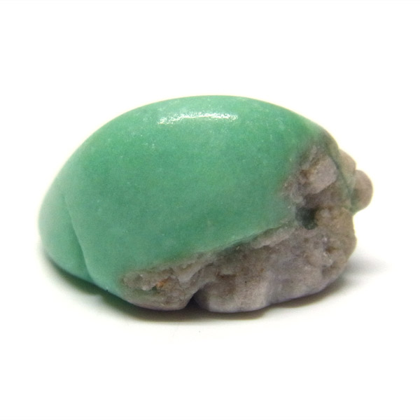 緑色に黒や白のまだら模様が入る事が多く、品質の良いものになるとクリソプレーズや翡翠のような美しい緑色をしております。