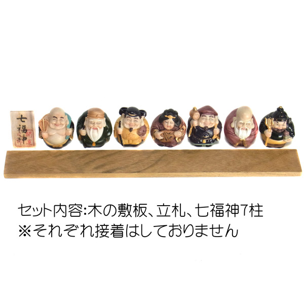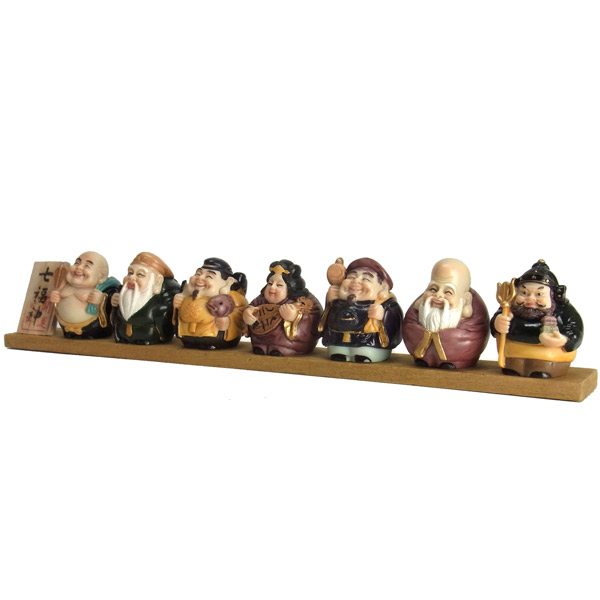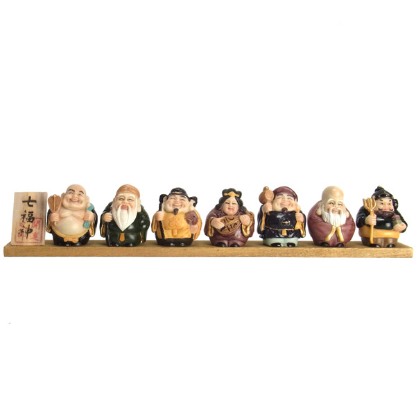 縁起物の大定番、かわいい七福神の置物です。一点一点丁寧な彩色を施しています。 七福神とは、あらゆるものに福をもたらすとして日本で信仰されている恵比寿、大黒天、毘沙門天、弁才天、福禄寿、寿老人、布袋の七柱の神です。