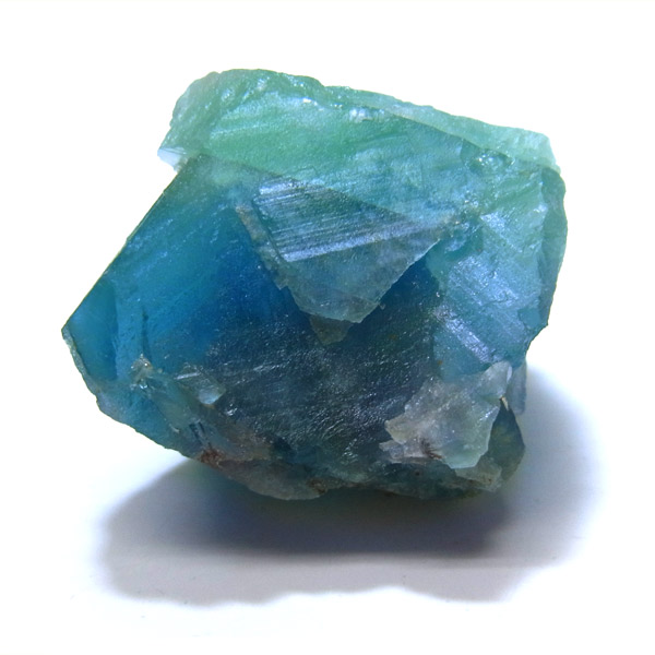 当たる光の関係で、ブルーやグリーンに見える美しいフローライトの結晶です。