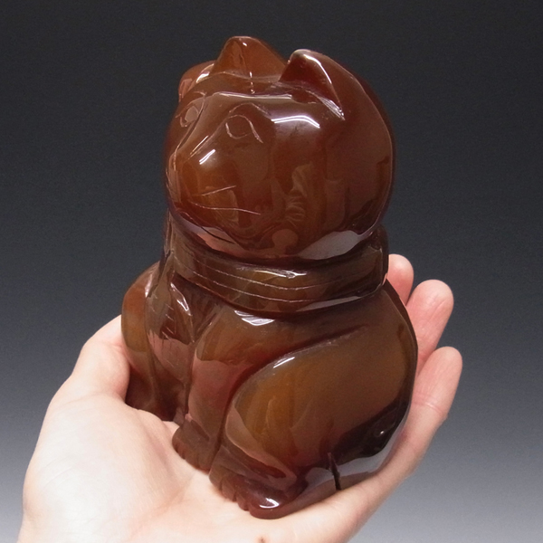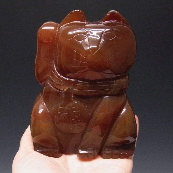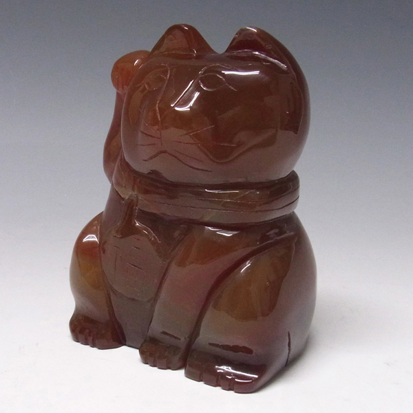 レッドメノウ 招き猫 置物(大)