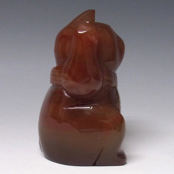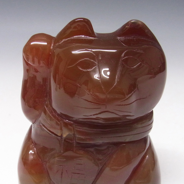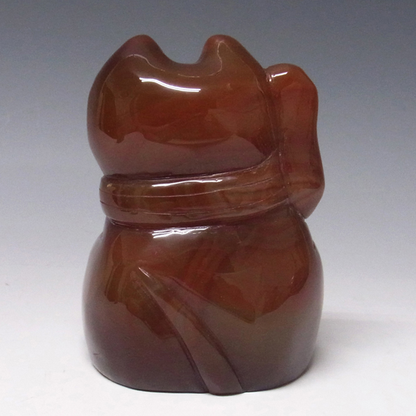 レッドメノウから彫りあげられたかわいい天然石の招き猫です。レッドメノウの発色の良い赤がきれいなアイテムです。