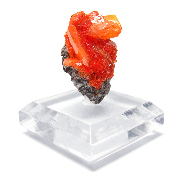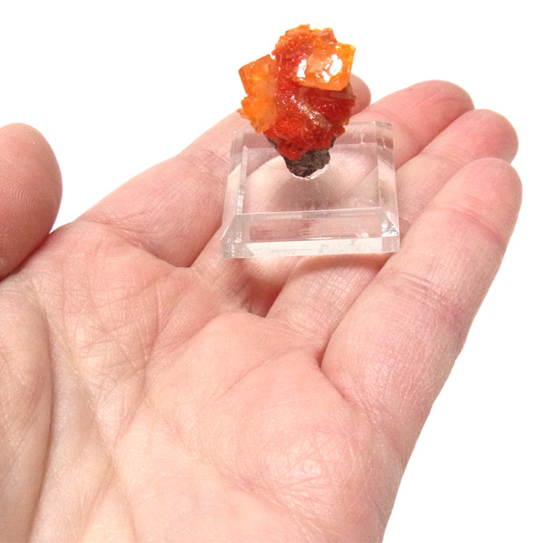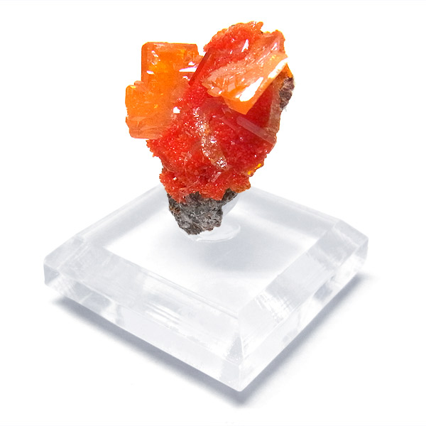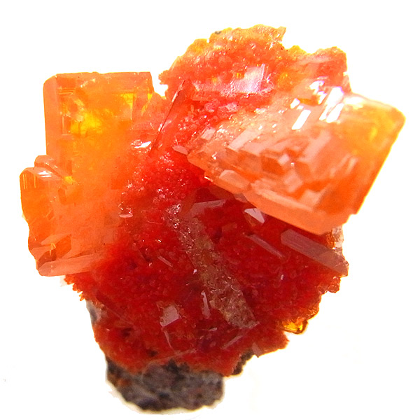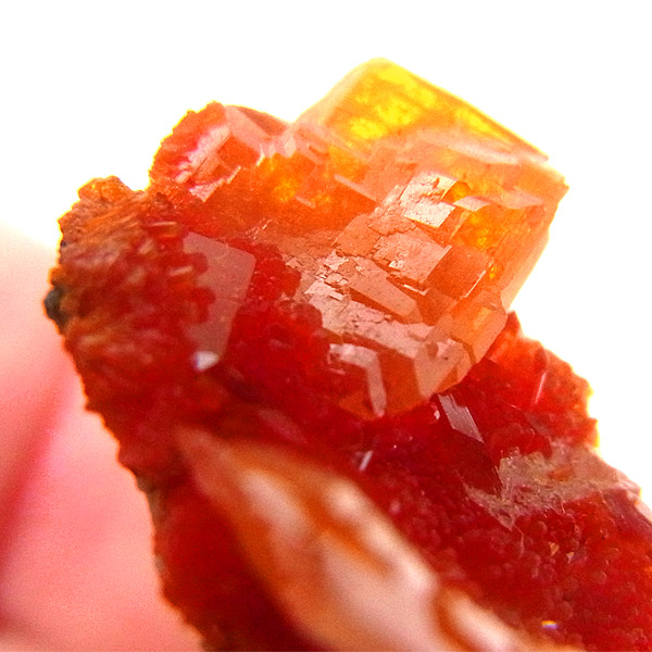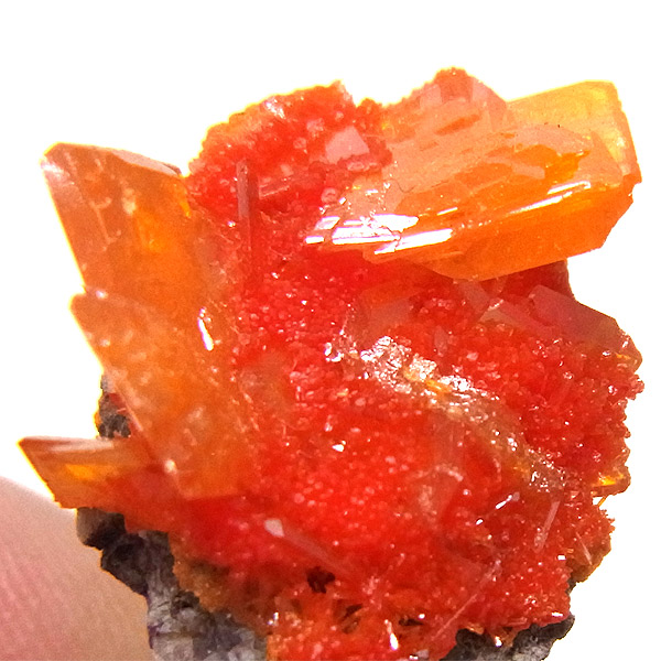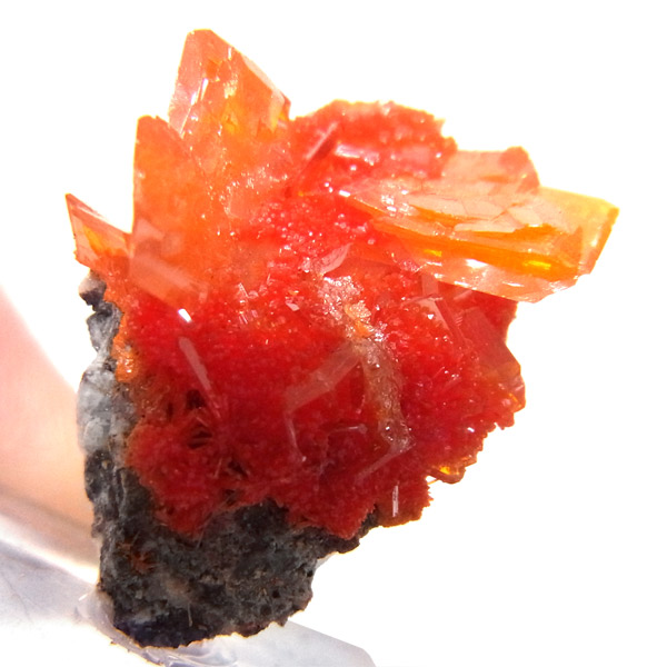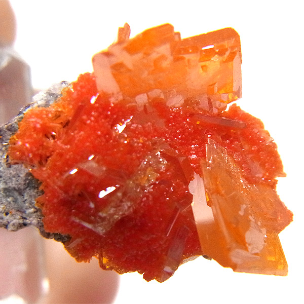 黄・褐・緑・青・紅(鉛鉱)など各色あるのですが、赤〜橙色系のもは珍しく、愛好家に人気が高いです。
