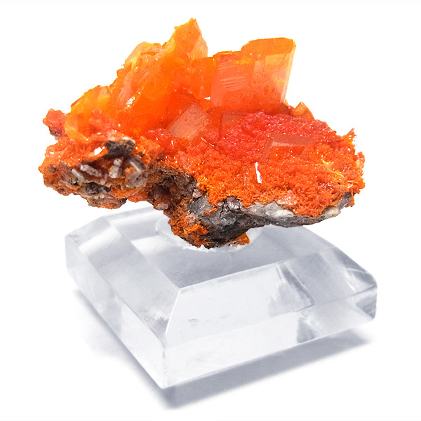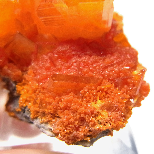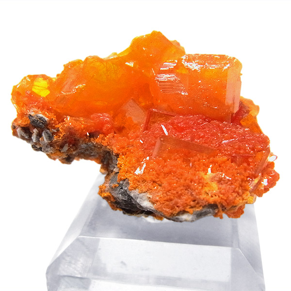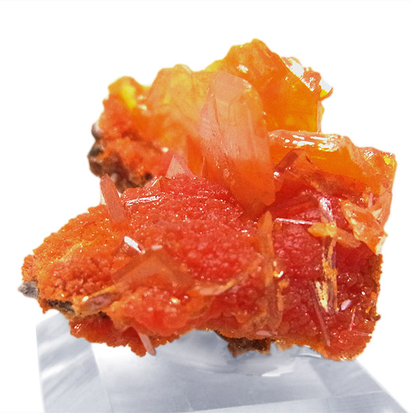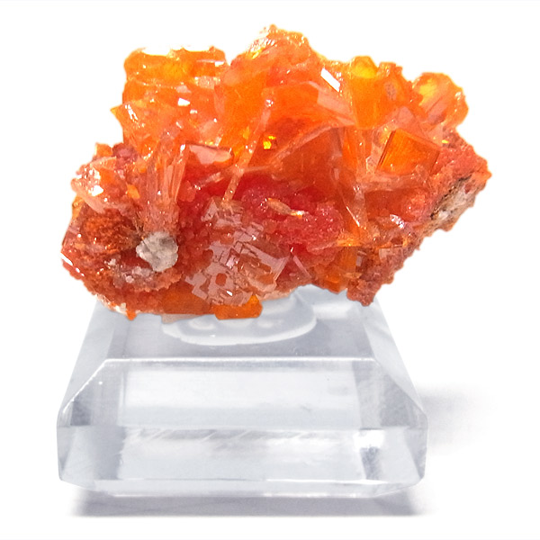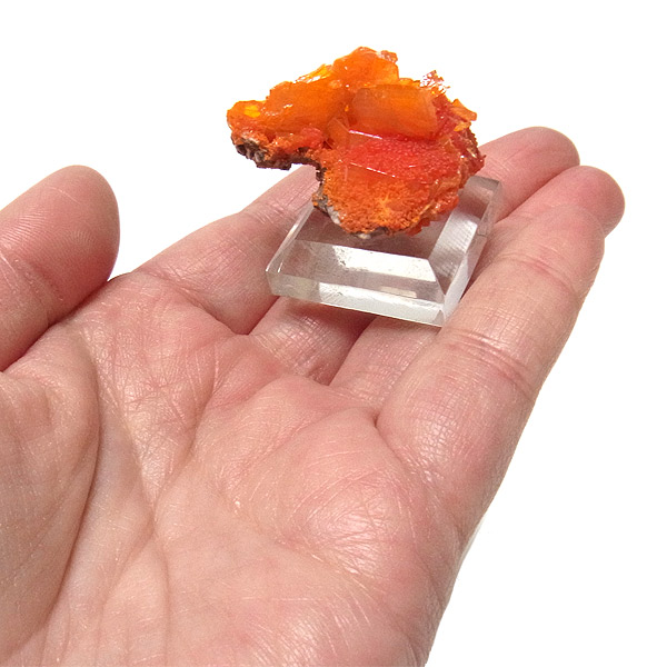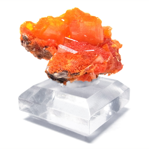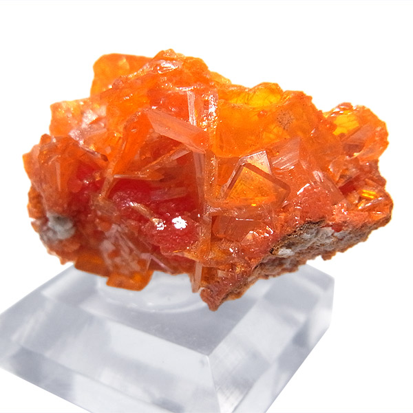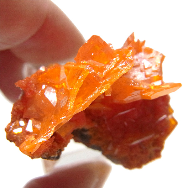 黄・褐・緑・青・紅(鉛鉱)など各色あるのですが、赤〜橙色系のもは珍しく、愛好家に人気が高いです。