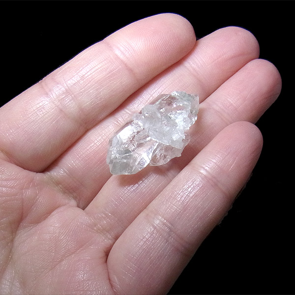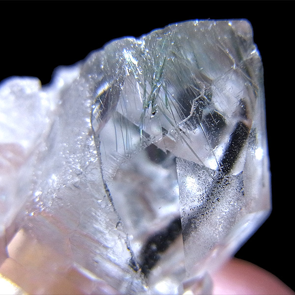 大変珍しいダブルポイントになっています。また、クラスターの一部に、緑泥石(クローライト)が針状にインクルージョンされています。