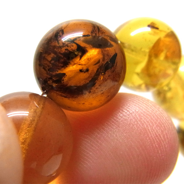 バーマイトは、ミャンマーのカチン州フーコンバレー(死の谷)と呼ばれる地域でのみ産出される琥珀で、産出量が大変少ない稀産琥珀です。形成された年代は、約9700万年前の白亜紀後期、まだ恐竜が生きていた頃と言われています。ドミニカやバルト海産の琥珀はそれぞれ2〜3千万年前で、恐竜が絶滅してずっと後になって生まれたもので、バーマイトはこれに比べ「古く硬く重い」と言われています。バーマイトのほとんどは中国に輸出され、多くが薬用・香料などに使われる為、ブレスレットになるものは大変少ないのが現状です。また、ブルーアンバーそのものが、コンクパール、ラリマーと並びカリブの三大宝石と呼ばれています。