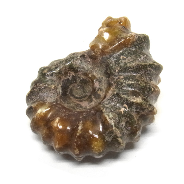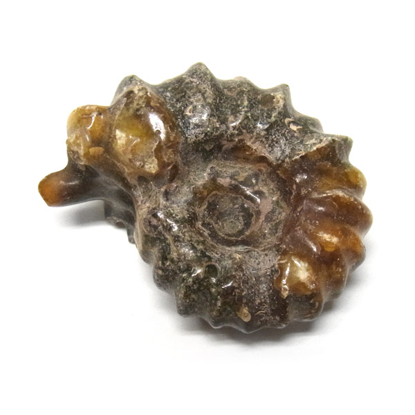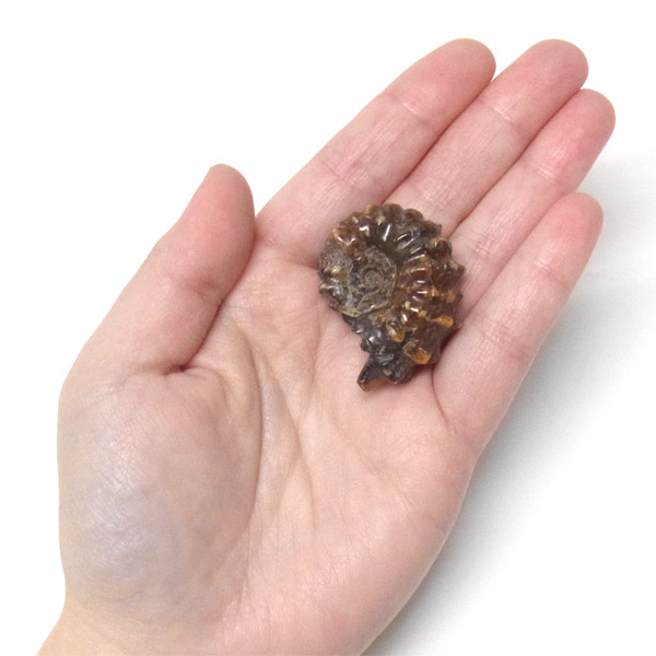 小ぶりの可愛らしいアンモナイトの化石です。キレイな飴色をしており、持ち歩くのにもちょうどいい大きさです。