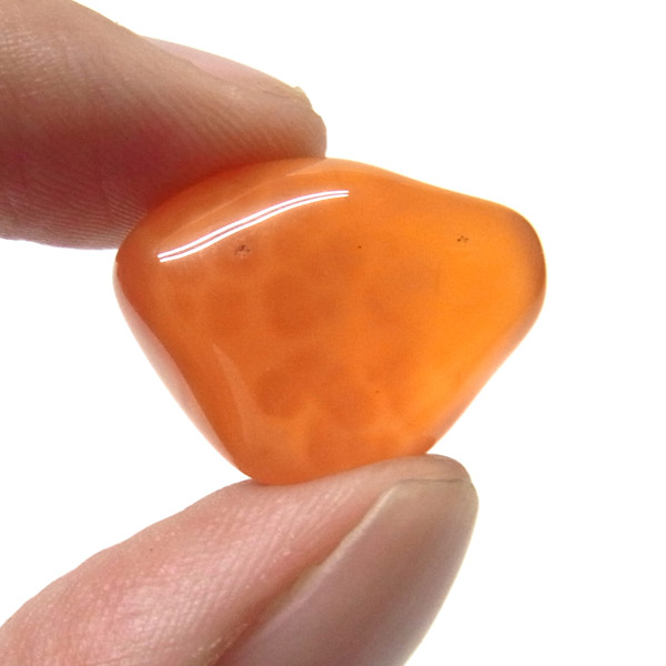 発色が良く、濃いオレンジが美しいカーネリアンのタンブルです。