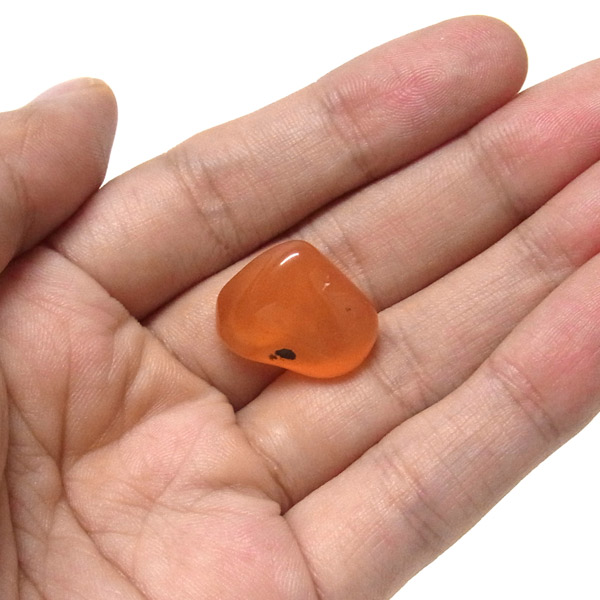 発色が良く、濃いオレンジが美しいカーネリアンのタンブルです。