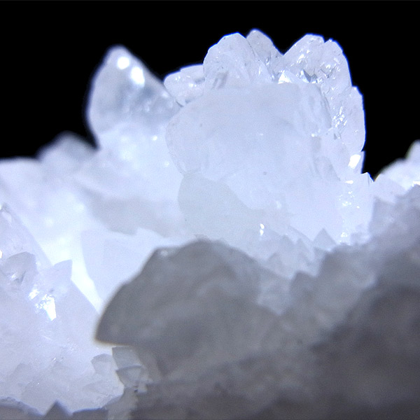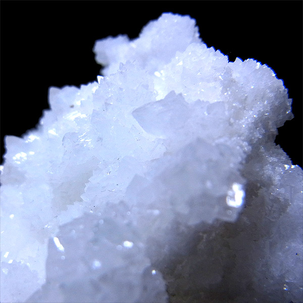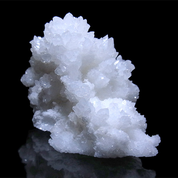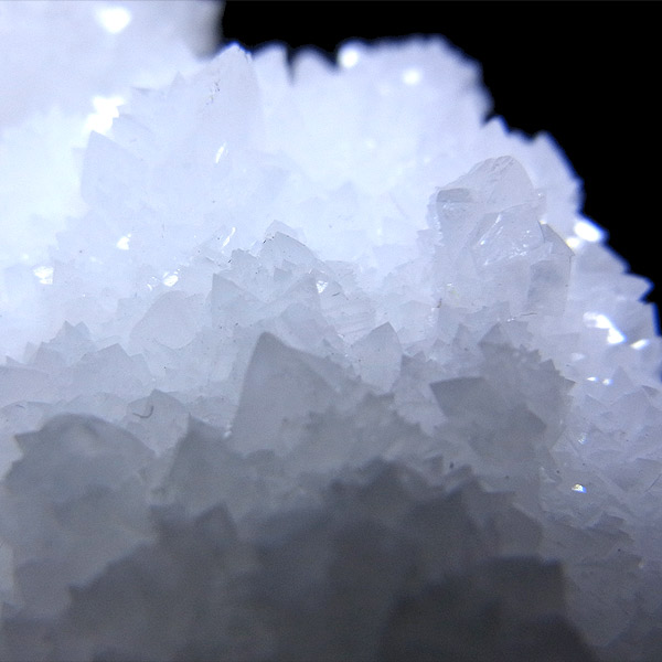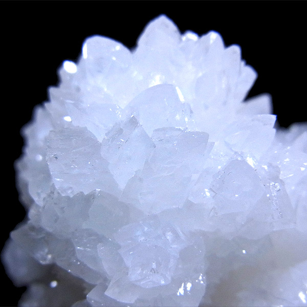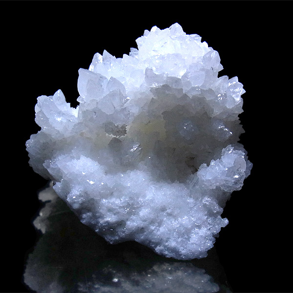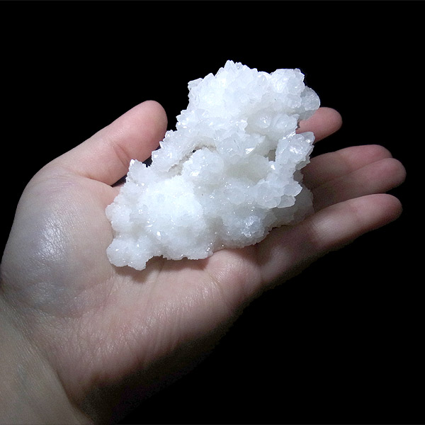 雪のように真っ白な結晶がキラキラと光を反射して、とても美しいアラゴナイト・フロスフェリです。