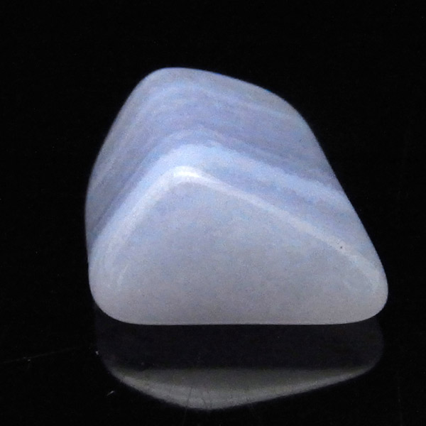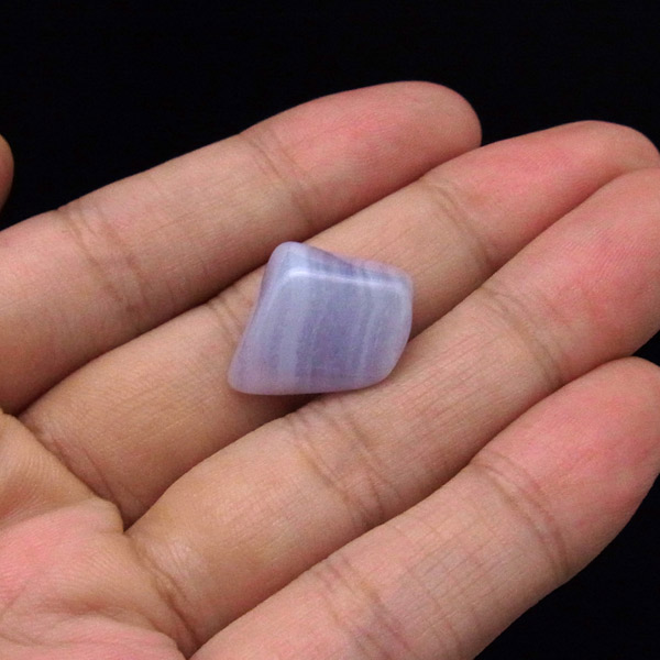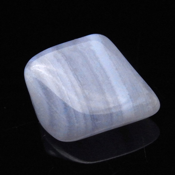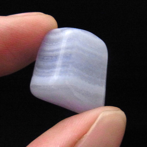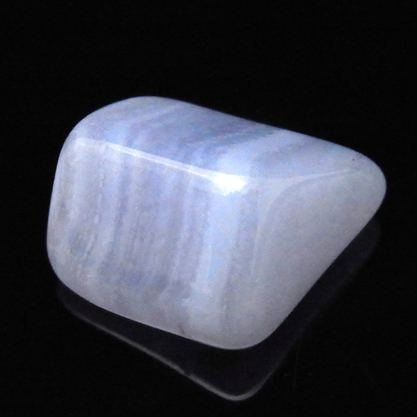 美しい縞模様が入ったブルーレースアゲートのタンブルです。ブルーレースアゲートの和名は「空色縞瑪瑙」。