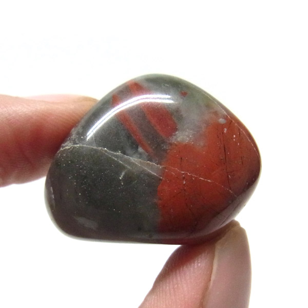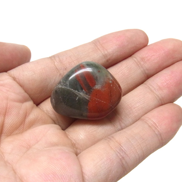 スワジランド産のセフトナイト、タンブルです。セフトナイトまたはヴァルカンジャスパーと呼ばれております。セフトナイトはマーカサイトの成分を含むカルセドニーとシャスパーの混合石です。赤い斑点は鉄分によるものです。インド産のブラッドストーンに似ていることから、流通名としてアフリカンブラッドストーンとも呼ばれております。