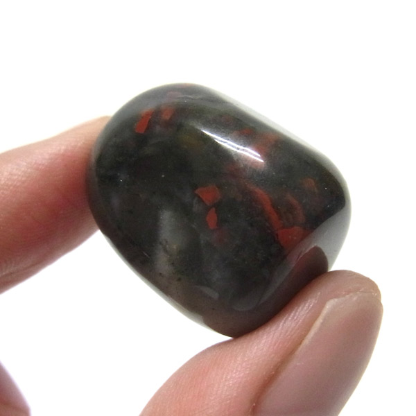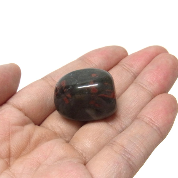 スワジランド産のセフトナイト、タンブルです。セフトナイトまたはヴァルカンジャスパーと呼ばれております。セフトナイトはマーカサイトの成分を含むカルセドニーとシャスパーの混合石です。赤い斑点は鉄分によるものです。インド産のブラッドストーンに似ていることから、流通名としてアフリカンブラッドストーンとも呼ばれております。