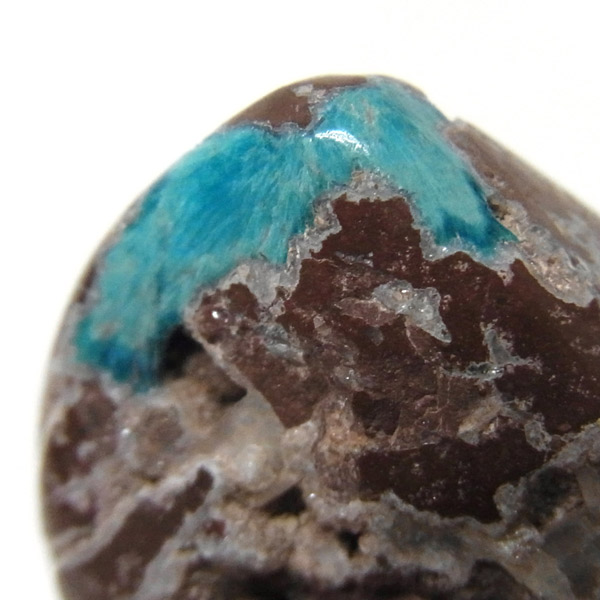 カバンサイトは、沸石の中でも人気を誇る、美しいビビッドな青い発色が魅力です。主成分の、「カルシウム」「バナジウム」「シリコン」の3つの頭文字をつなげて「カバンサイト」と付けられたのが名前の由来です。