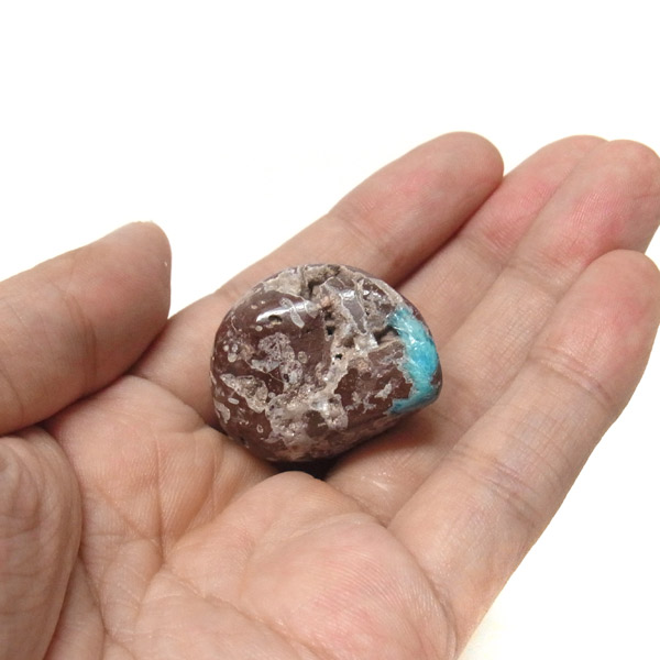 そのため、ルースやタンブルに加工することは非常に難しいのですが、今回ご用意した商品は、母岩共々加工する事で、ようやくタンブルとしてご案内できる超レアなものとなります。