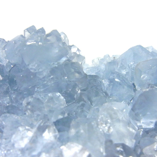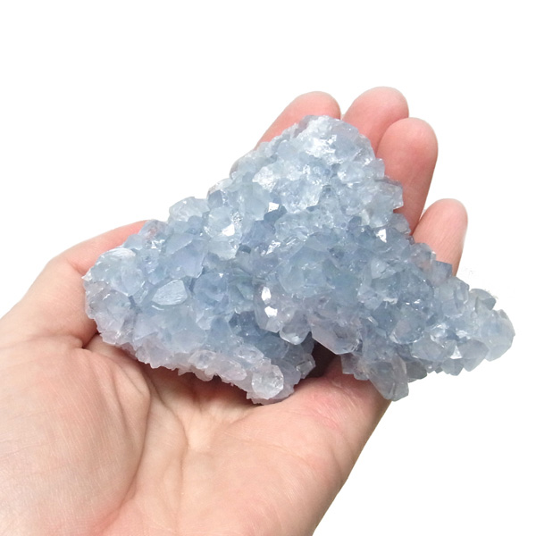 一粒一粒が比較的大きく、自然の神秘を感じます。写真では伝わりにくいですが、結晶がキラキラと光に反射して大変キレイです。不純物もほどんどなく、大変良質なセレスタイトです。 大きさもずっしりと重さがあり、満足いただけるかと思います。