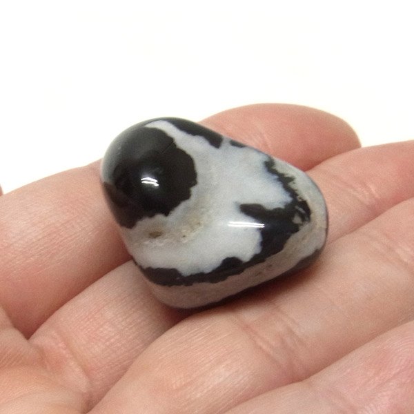 スレイマン(スレマニ)はアゲートの白黒の縞メノウ(天眼石)の仲間です。独特で縞メノウと結晶化した二酸化ケイ素含む水溶液が周期的に沈殿し、そのたびごとに不純物が取り込まれ、層状に結晶化したものです。