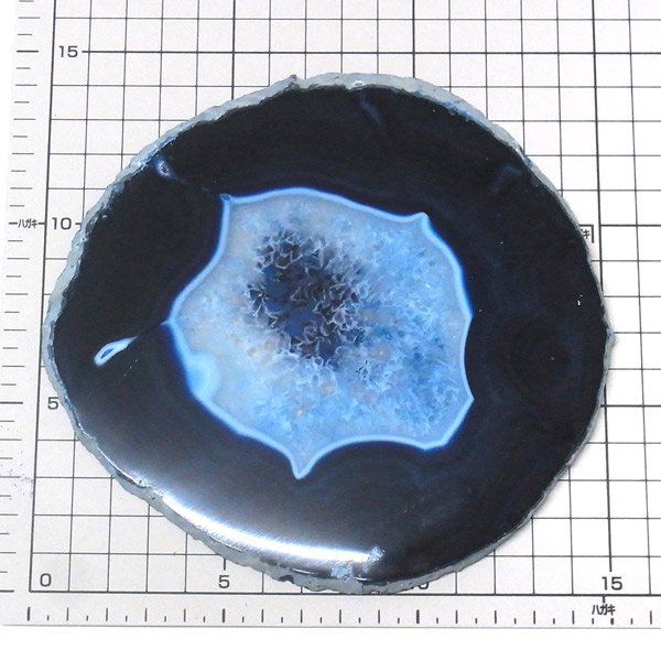 ブラジル産メノウを染色し、薄くスライスした色鮮やかなメノウスライスです。カラーはブルー、大きさは特大サイズです。