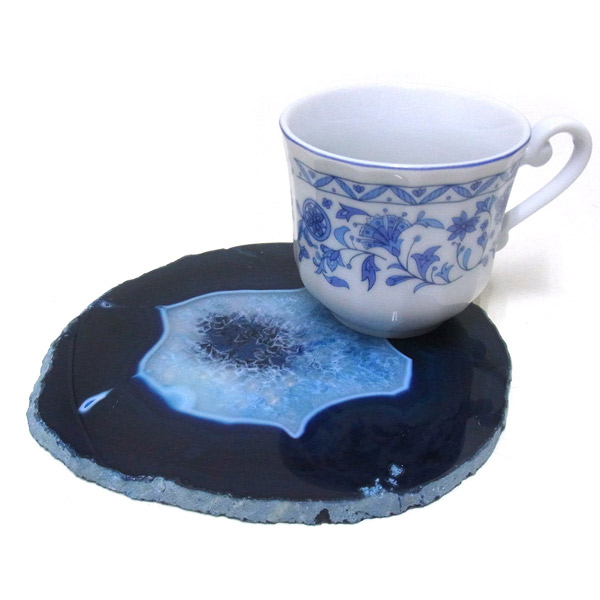 染色することにより、色の濃淡ができ、メノウの縞模様がより一層美しくなります。置物を置いたり、鉱物を置いたりのインテリアとしてや、グラスなどを置くコースターとしてもお楽しみ頂けます。