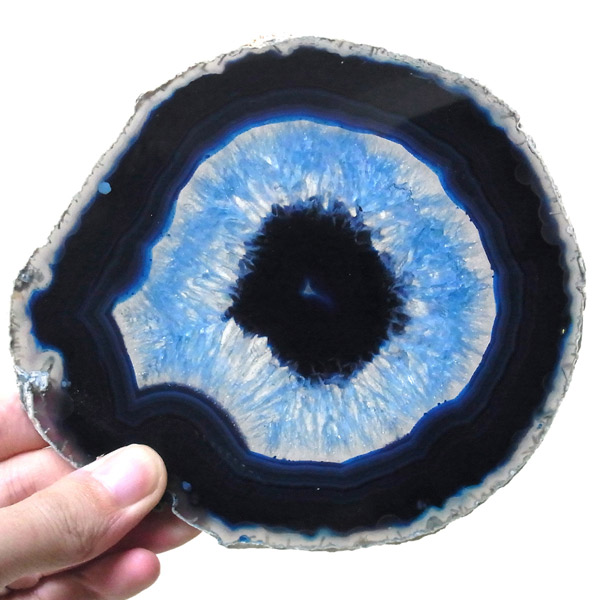 ブラジル産メノウを染色し、薄くスライスした色鮮やかなメノウスライスです。カラーはブルー、大きさは特大サイズです。