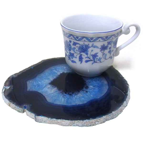 染色することにより、色の濃淡ができ、メノウの縞模様がより一層美しくなります。置物を置いたり、鉱物を置いたりのインテリアとしてや、グラスなどを置くコースターとしてもお楽しみ頂けます。