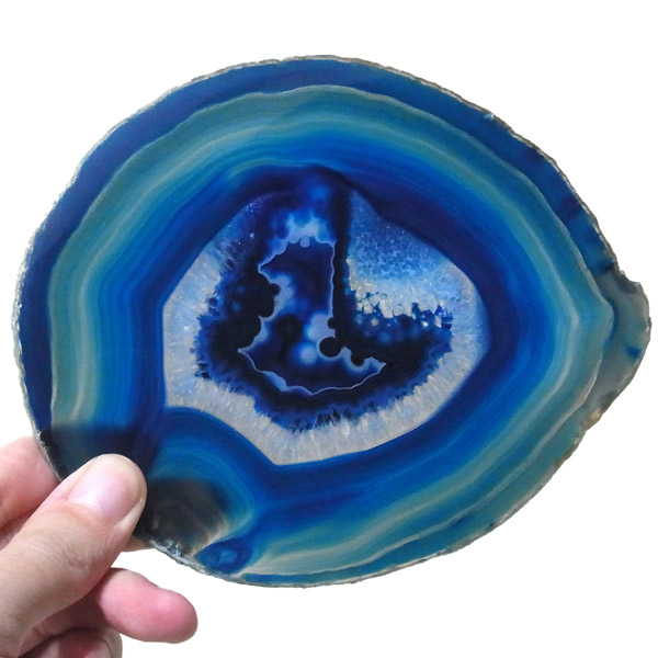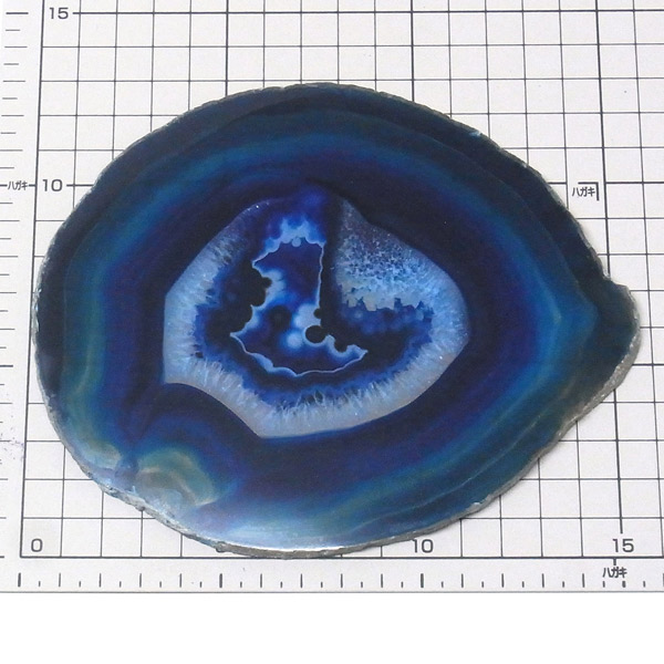 ブラジル産メノウを染色し、薄くスライスした色鮮やかなメノウスライスです。カラーはブルー、大きさは特大サイズです。