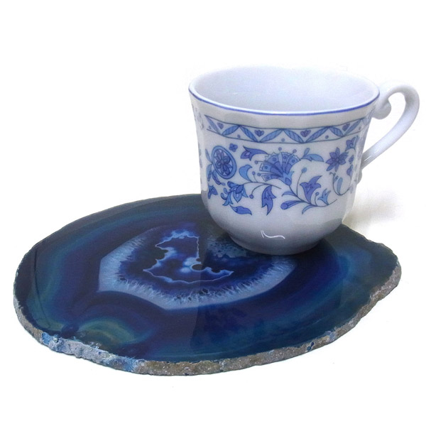 染色することにより、色の濃淡ができ、メノウの縞模様がより一層美しくなります。置物を置いたり、鉱物を置いたりのインテリアとしてや、グラスなどを置くコースターとしてもお楽しみ頂けます。