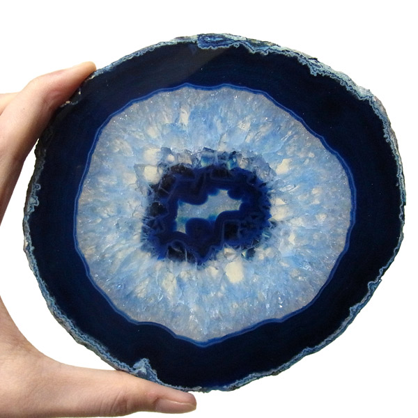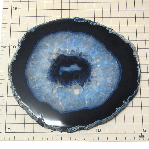 ブラジル産メノウを染色し、薄くスライスした色鮮やかなメノウスライスです。 カラーはブルー、大きさは特大サイズです。