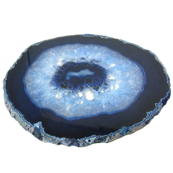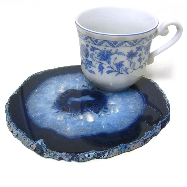 染色することにより、色の濃淡ができ、メノウの縞模様がより一層美しくなります。置物を置いたり、鉱物を置いたりのインテリアとしてや、グラスなどを置くコースターとしてもお楽しみ頂けます。