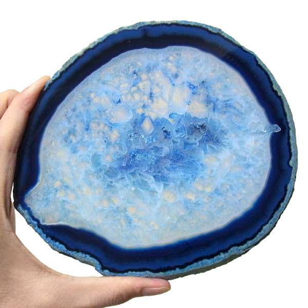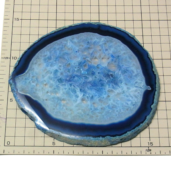 ブラジル産メノウを染色し、薄くスライスした色鮮やかなメノウスライスです。 カラーはブルー、大きさは特大サイズです。