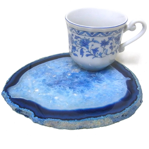 染色することにより、色の濃淡ができ、メノウの縞模様がより一層美しくなります。置物を置いたり、鉱物を置いたりのインテリアとしてや、グラスなどを置くコースターとしてもお楽しみ頂けます。