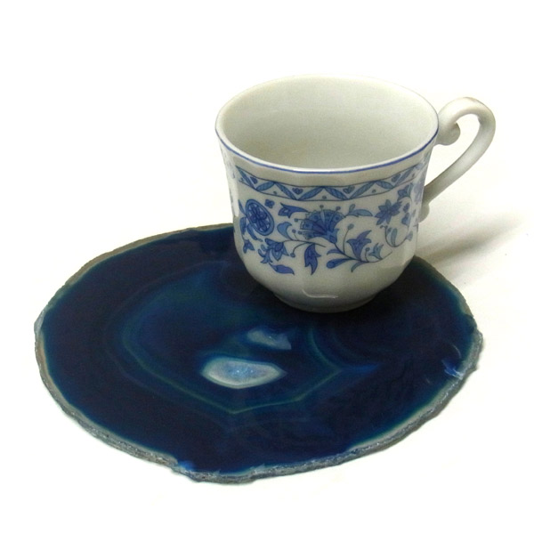 染色することにより、色の濃淡ができ、メノウの縞模様がより一層美しくなります。置物を置いたり、鉱物を置いたりのインテリアとしてや、グラスなどを置くコースターとしてもお楽しみ頂けます。