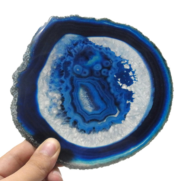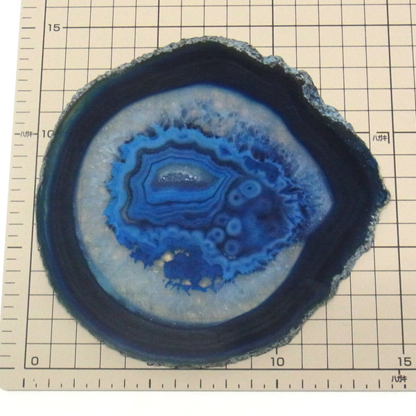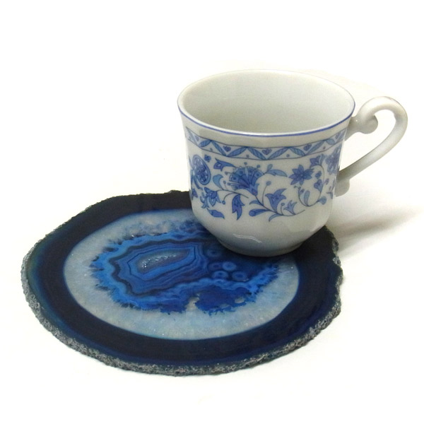 染色することにより、色の濃淡ができ、メノウの縞模様がより一層美しくなります。置物を置いたり、鉱物を置いたりのインテリアとしてや、グラスなどを置くコースターとしてもお楽しみ頂けます。