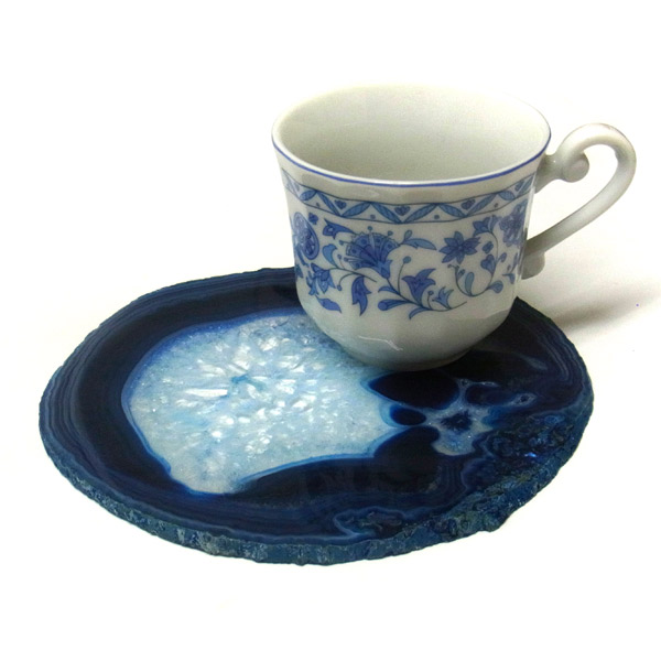 染色することにより、色の濃淡ができ、メノウの縞模様がより一層美しくなります。置物を置いたり、鉱物を置いたりのインテリアとしてや、グラスなどを置くコースターとしてもお楽しみ頂けます。