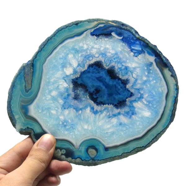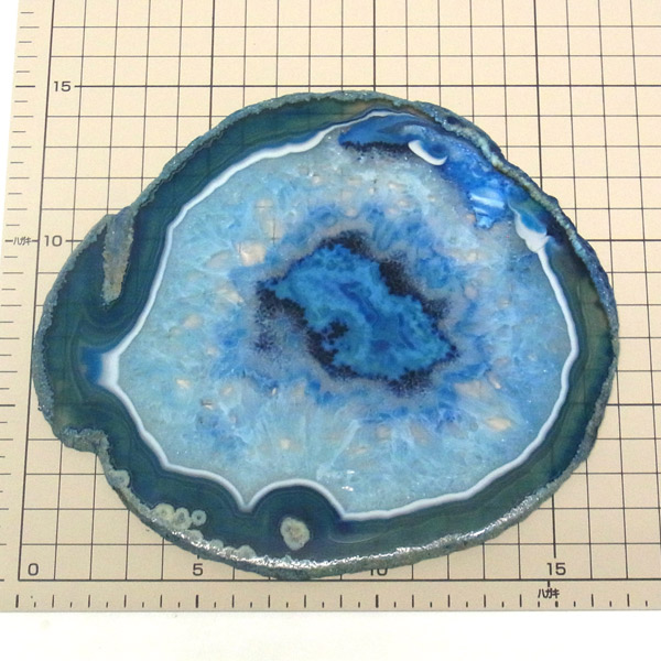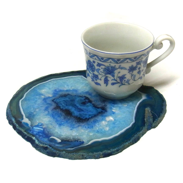 染色することにより、色の濃淡ができ、メノウの縞模様がより一層美しくなります。置物を置いたり、鉱物を置いたりのインテリアとしてや、グラスなどを置くコースターとしてもお楽しみ頂けます。