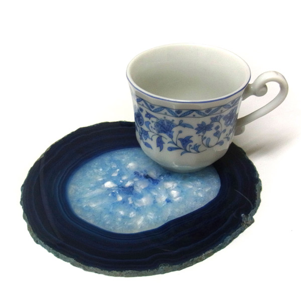 染色することにより、色の濃淡ができ、メノウの縞模様がより一層美しくなります。置物を置いたり、鉱物を置いたりのインテリアとしてや、グラスなどを置くコースターとしてもお楽しみ頂けます。