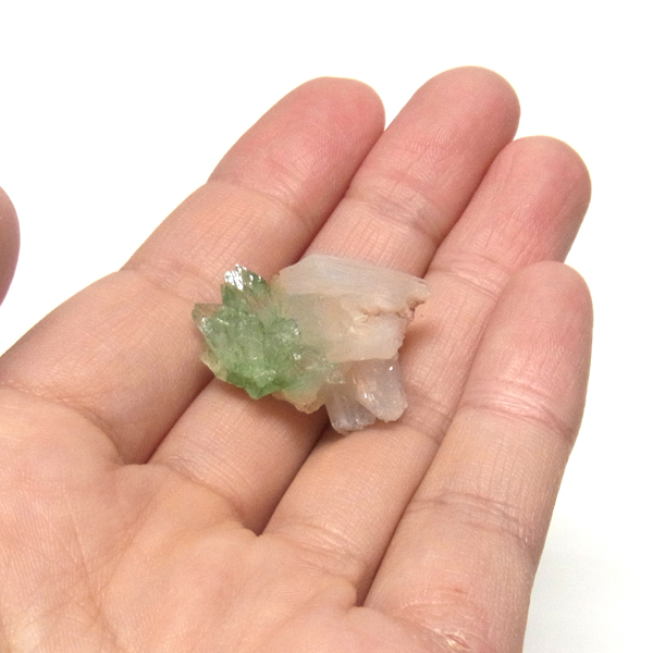 インド、プネー産のグリーンアポフィライト原石です。アポフィライトは、柱状や正方錘状の結晶を持ち、ひとつひとつの結晶が複雑に入り組んだ群晶が水晶とは違う神々しい輝きを魅せてくれます。透明度が非常に高くキラキラ輝き神秘的でとてもきれいです。