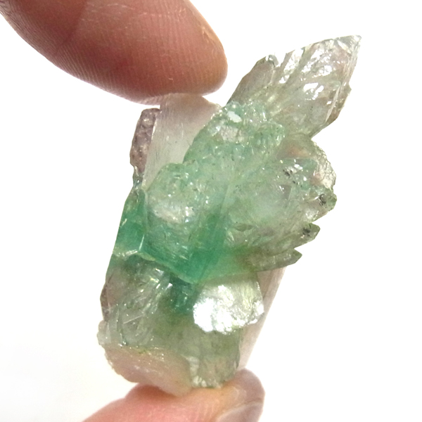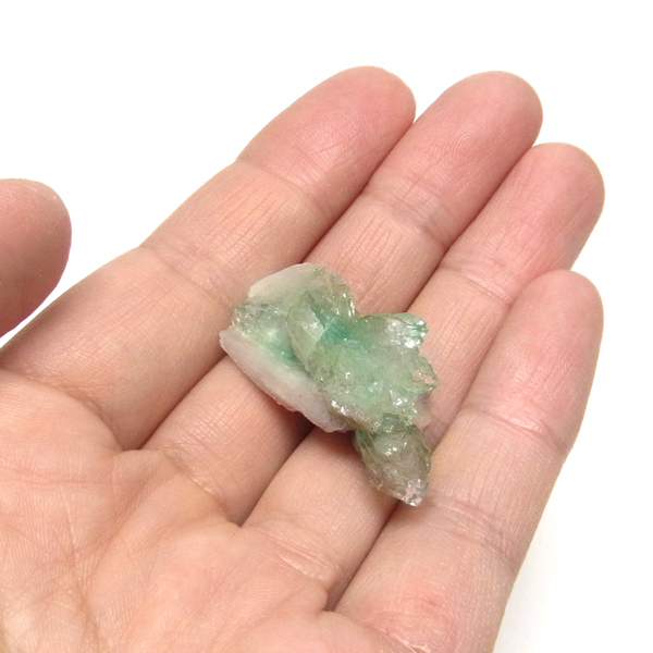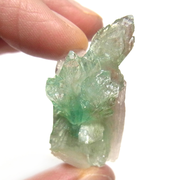 インド、プネー産のグリーンアポフィライト原石です。アポフィライトは、柱状や正方錘状の結晶を持ち、ひとつひとつの結晶が複雑に入り組んだ群晶が水晶とは違う神々しい輝きを魅せてくれます。透明度が非常に高くキラキラ輝き神秘的でとてもきれいです。